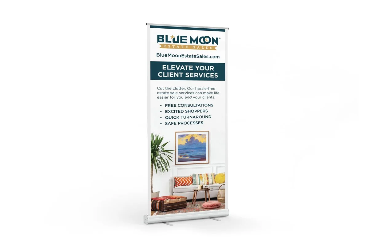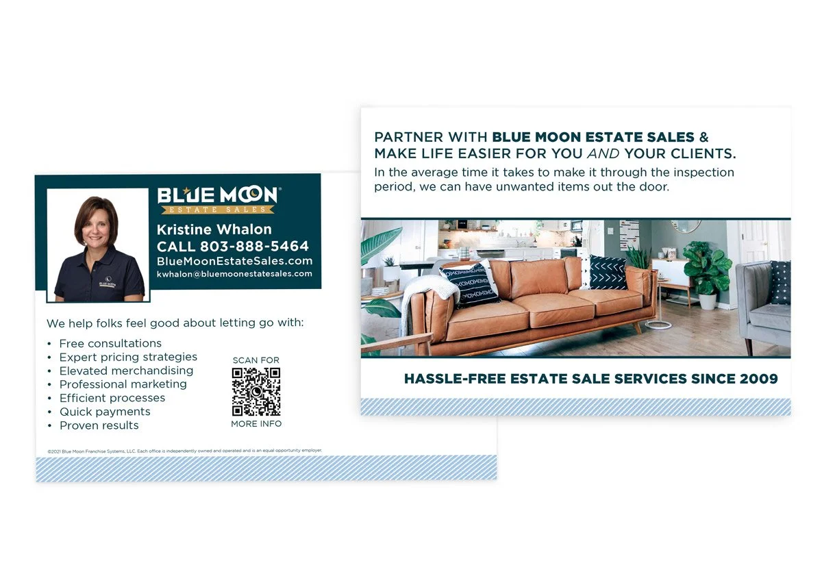 Blue Moon Estate Sales is a national estate sales franchise headquartered in North Carolina. I joined the HQ team in 2018, and it was a classic startup environment: five passionate, driven people, each wearing five times as many hats, huddled around a kitchen table sharing ideas, getting creative, and making things happen. The big goal was to nurture what was once a small family business into the go-to estate sale brand. My role involved shaping the brand’s identity, establishing and maintaining standards, and promoting Blue Moon to clients, customers, owners, and potential franchisees via original, engaging content, designs, and communications.